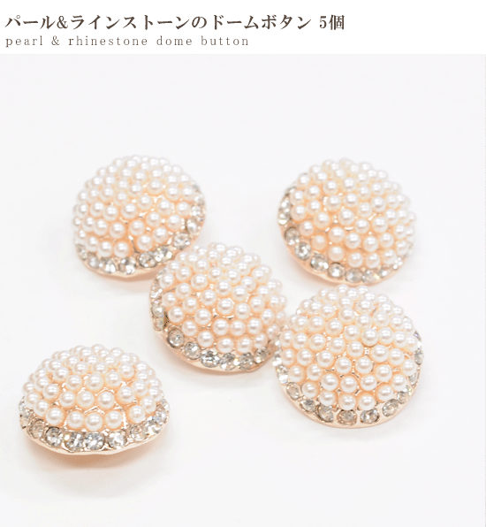 パール&ラインストーンのドーム型ボタン 5個入り 直径20mmボタン 《 パール ボタン 足付きボタン カーディガン ヘアアクセ ブローチ 手芸 ハンドメイド 手作り 》